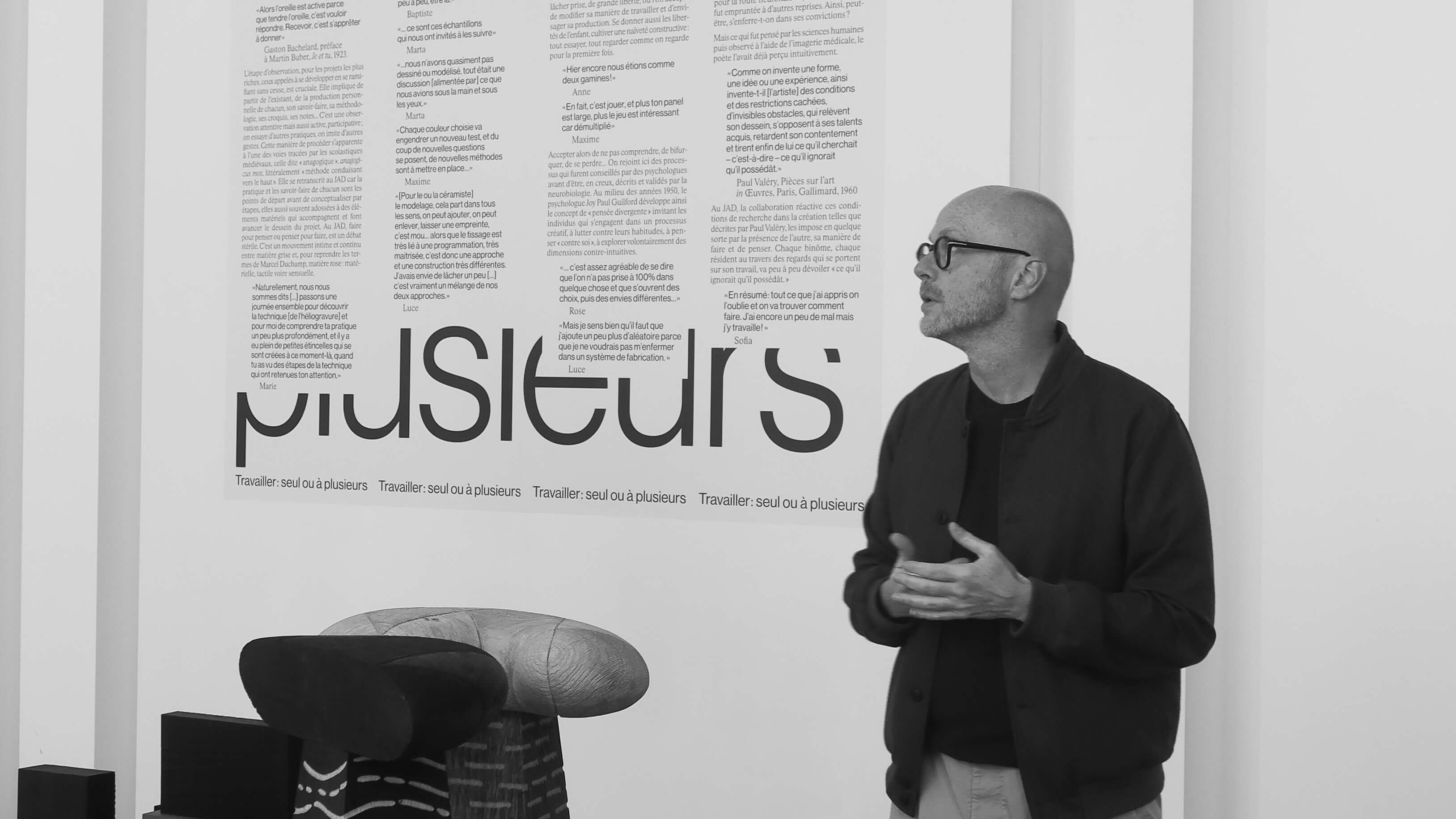 Dans l’exposition plus spécifiquement, ce que je trouvais intéressant de montrer, c’est l’association de deux termes : intelligence collective. On constate que cela répond, en creux à un malaise lié à une individualisation trop marquée de la société. Mais qu’est-ce que cela veut dire en pratique ? Est-ce qu’on peut forcer artificiellement l’intelligence collective, comme on forcerait une réaction dans un laboratoire de chimie ? Sur le terrain, cela s’avère plus complexe. On constate qu’il faut des ingrédients : du temps, une bonne entente, le sens de l’écoute, l’ouverture, une bonne gestion de l’espace… En acceptant d’assurer le commissariat de cette exposition au JAD – où ces éléments sont réunis – j’ai pu approfondir l’étude de cette notion d’intelligence collective. Je me suis alors demandé : comment peut-elle naître ? En quoi était-elle aussi un vecteur d’innovation ?