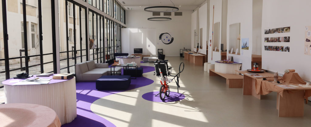 Cette exposition questionne ainsi les différentes approches qui sont adoptées dans la conception des objets, des espaces et des services et réunit une variété de projets et d’acteurs pour une société plus inclusive : la prothèse de Dimitry Hlinka – créée pour l’athlète français Arnaud Assoumani, le coffret de planches tactiles « Amazonia Touch » du Studio de création Créanog – en collaboration avec le photographe Sebastiao Salgado, la gamme d’électroménager inclusif de la marque SEB ou encore l’étude « Peaux éthiques » pilotée par Audrey Brugnoli du collectif Stétopotes sur les pratiques du soin et du bien-être pour des personnes atteintes de maladies rares de la peau.