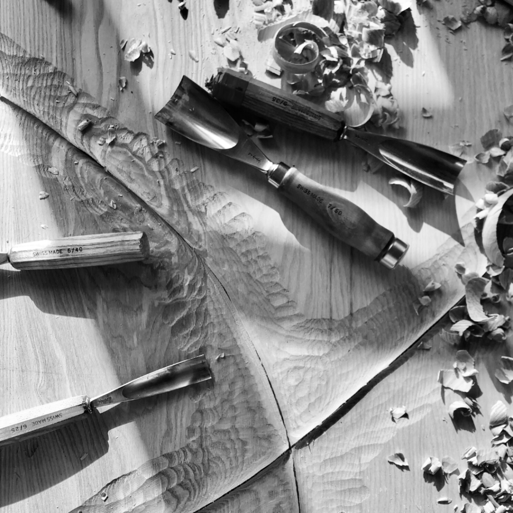 Albane Salmon, ébéniste de formation, travaille principalement le bois massif et fabrique elle-même toutes ses créations. Son esthétique se nourrit de l’observation de la nature et de phénomènes tels que l’érosion et l’usure aléatoire des matériaux exposés au temps et aux éléments. Ses créations privilégient des formes instinctives et organiques, tracées et modelées à main levée, imprégnées de l’irrégularité de l’œil et du geste de l’homme.