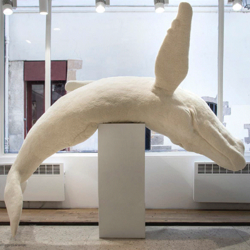 Votre travail de la laine se caractérise par la création de sculptures en ronde bosse, parfois monumentales, représentant souvent des animaux. D’où vient cette esthétique et quelles sont vos sources d’inspiration ?
