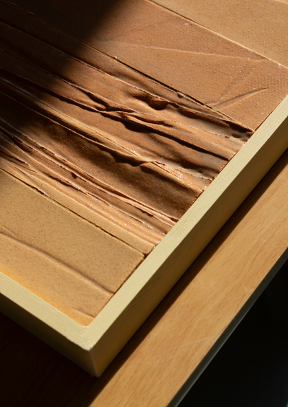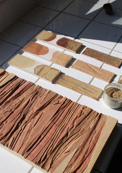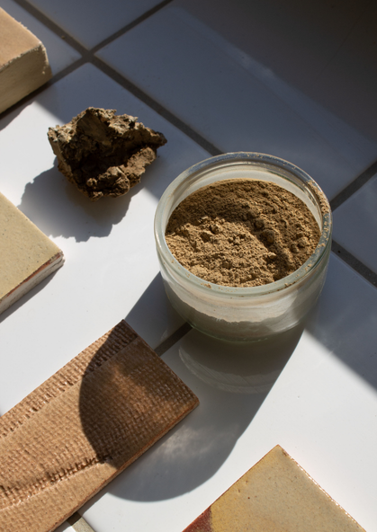 J’ai travaillé avec des chercheurs comme la physico-chimiste Myriam Duc de l’Université Gustave Eiffel pour étudier les gisements, identifier la composition des terres, etc. Je me suis rapprochée d’acteurs industriels comme Placoplatre pour collecter leurs déchets de carrière. J’ai ensuite mené des premières expérimentations à partir de ces terres pour produire des carreaux. Ce qui m’intéressait, c’était l’idée que les déchets issus de l’architecture puissent, en quelque sorte, retourner au bâtiment, en devenant ornements de façade : comme si l’édifice portait sur lui les traces visibles de son histoire.