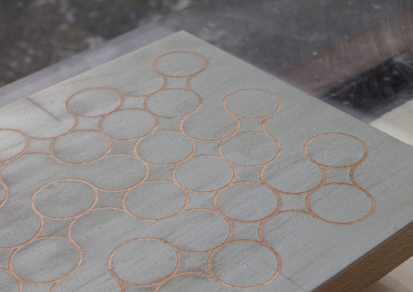 Cette recherche trouve notamment des applications dans le domaine architectural, à travers la création de carreaux décoratifs. Plusieurs lieux m’ont sollicitée dans ce cadre, comme récemment le Bon Marché. Le carreau est aussi devenu pour moi un module d’expression que j’ai exploré dans des pièces de mobilier, c’est le cas, par exemple, du guéridon actuellement exposé au JAD dans le cadre de Aléas, pratiques de l’adaptation.