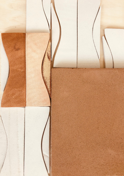 Avec Lucie Ponard, nous explorons ensemble le dialogue entre enduits de terres crues et carreaux émaillés à l’échelle architecturale, sur des surfaces murales. C’est une recherche autour des textures, du contraste entre le mat et le brillant. Pour ce projet, nous avons travaillé – comme le fait Lucie dans son projet de recherche – avec des terres d’excavation collectées à Antony. A partir de là, nous avons développé une palette d’émaux et d’enduits et mené un travail formel autour du plissé. Dans un second temps, nous avons expérimenté des compositions mêlant carreaux émaillés et enduits en terre crue. Ces recherches donneront lieu à une première présentation lors de la Paris Design Week.